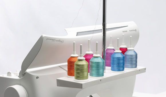 Viene inserito nella parte superiore dietro alla macchina e viene dotato di portaspola che tengono fino ad otto rocchetti. I portarocchetti sono numerati in funzione dei cambi di colore nei